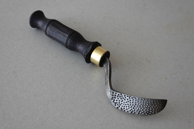 ヒールエリアのウッドペグ除去に適したデザインのラスプです 時計回りに回して使用 炭素工具鋼 Made by ittk.